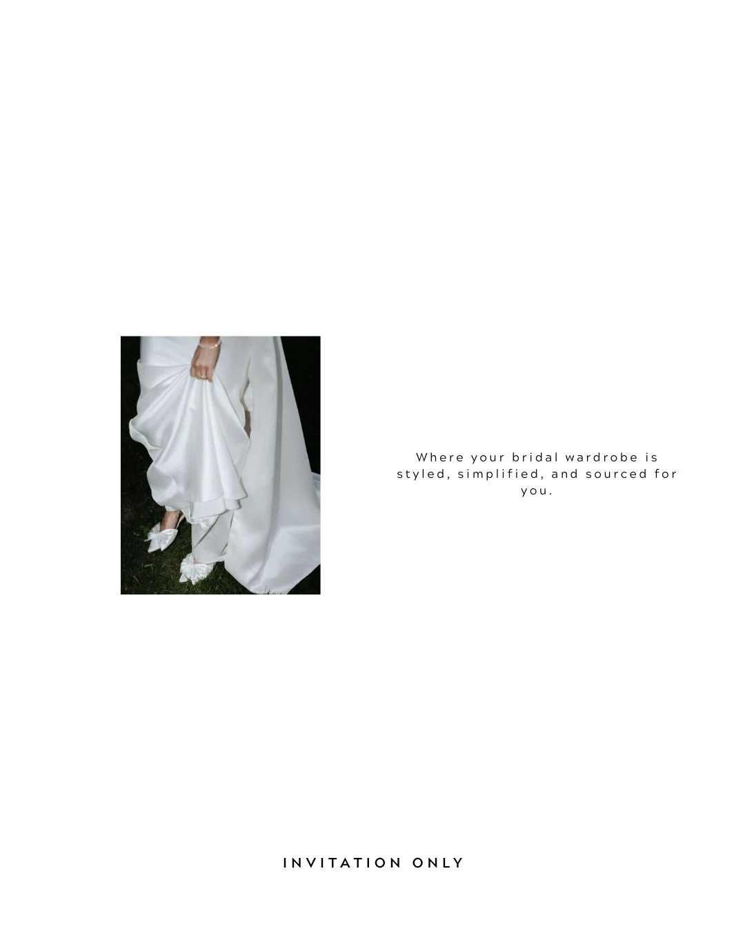 Planning your wedding wardrobe is practically a full-time job - but it doesn’t have to be. Whether you’re styling a destination wedding in Ibiza, a chic civil in the city, or a full weekend of white, Invitation Only offers curated, virtual bridal styling designed to take the pressure off and bring the looks in.